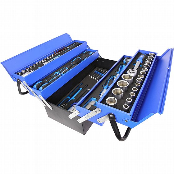 סט מקיף ואיכותי הכולל 85 כלים חיוניים לאנשי מקצוע, טכנאים ותחזוקה כללית – מאורגן בארגז מתכת הרמוניקה נפתח עם ידית נשיאה ונגישות גבוהה.